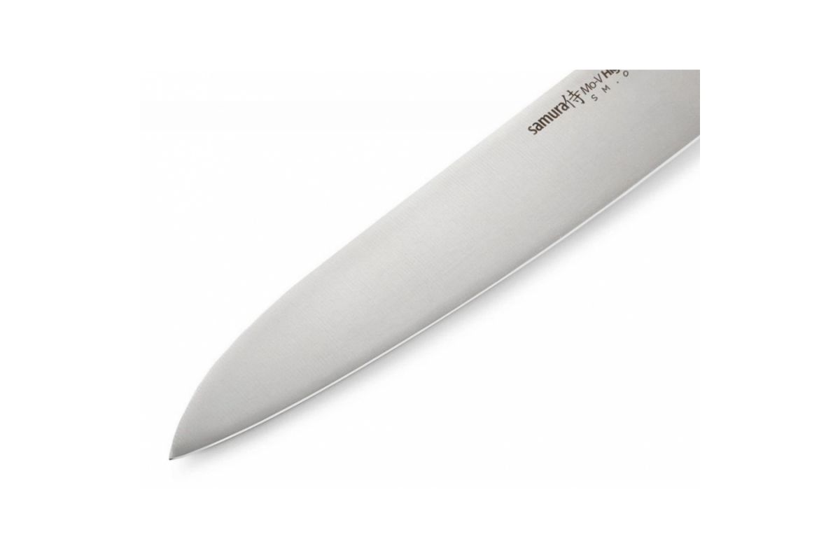 Čepeľ s hladkým ostrím, vyrobená z jedného kusu japonskej nerezovej ocele AUS-8, má dĺžku 24 cm. Táto oceľ ponúka výrazne vyššiu odolnosť oproti bežným kuchynským nožom, dlhšie si udrží ostrie a zároveň sa ľahko brúsi na vysokú ostrosť.