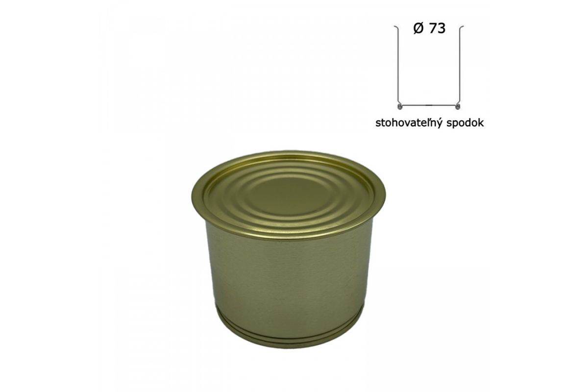 Konzervový obal s rozmerom Ø73/54mm, s objemom 210 ml, s obyčajným viečkom Ø73 mm.