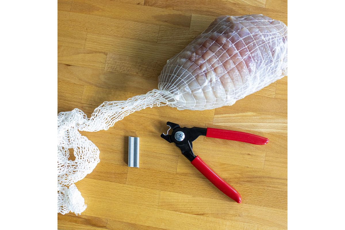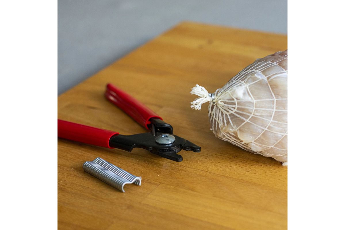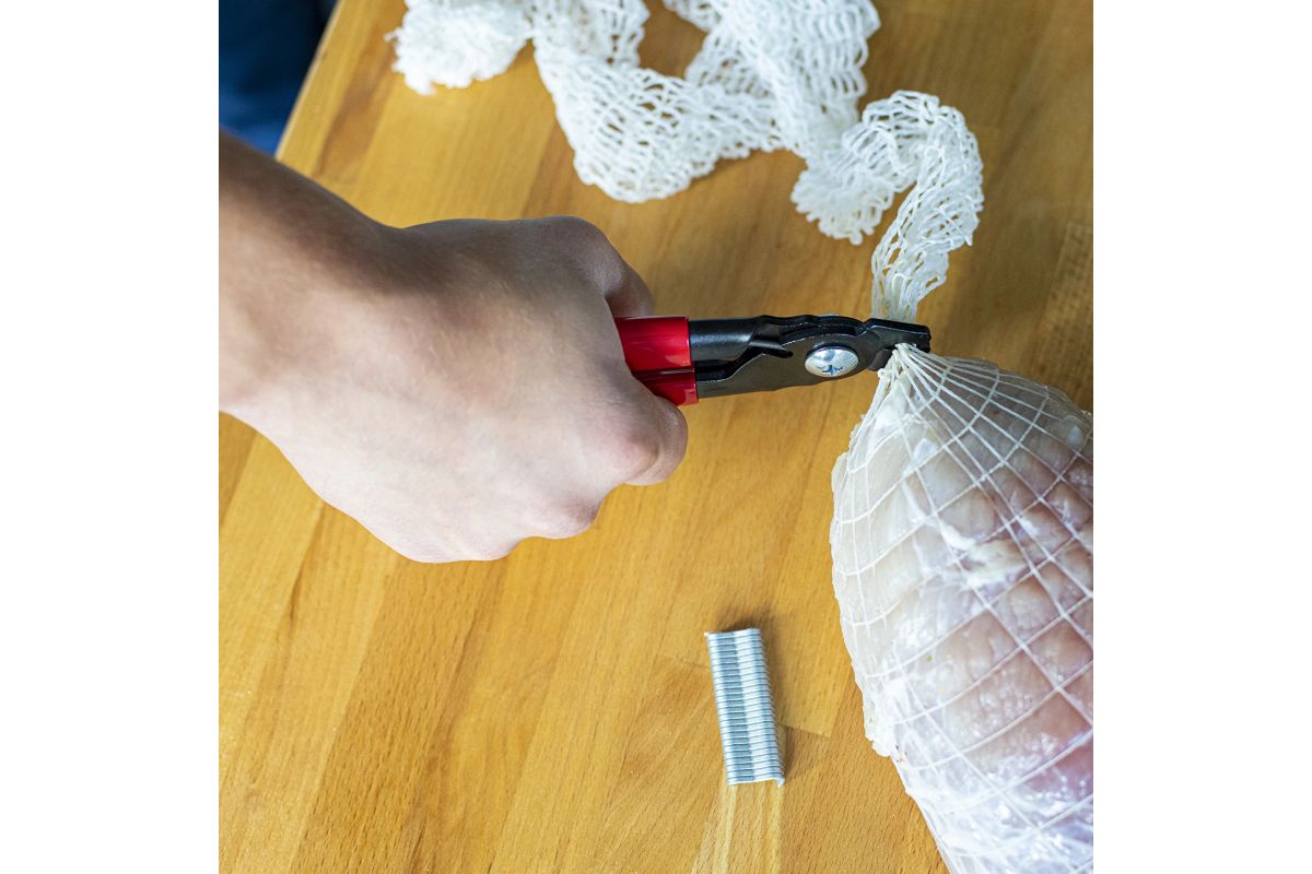 Tento krimpovací nástroj na studenú výrobu je vyrobený z vysoko kvalitnej nehrdzavejúcej ocele a je ideálny na krimpovanie špecializovaných klipov počas domácich údenín. Vďaka klipom budú črievka a obaly pevne chrániť pripravované mäso a sieťovina na studenú výrobu sa nerozmotá ani pod veľkou váhou. Krimpovací nástroj perfektne padne do ruky, je protišmykový a neuveriteľne ľahko sa používa. Kliešte sú veľmi ľahké a krimpovací nástroj má na koncoch špeciálne priehlbiny na vkladanie klipov. Po ich krimpovaní sa zariadenie automaticky otvorí pre ďalšie krimpovanie. Špeciálne tvarovaná hlava zaisťuje rýchle a presné upnutie. Krimpovací nástroj sa dodáva aj so 60 klipmi, čo vám umožní začať vyrábať domáce výrobky hneď po vybalení z krabice!