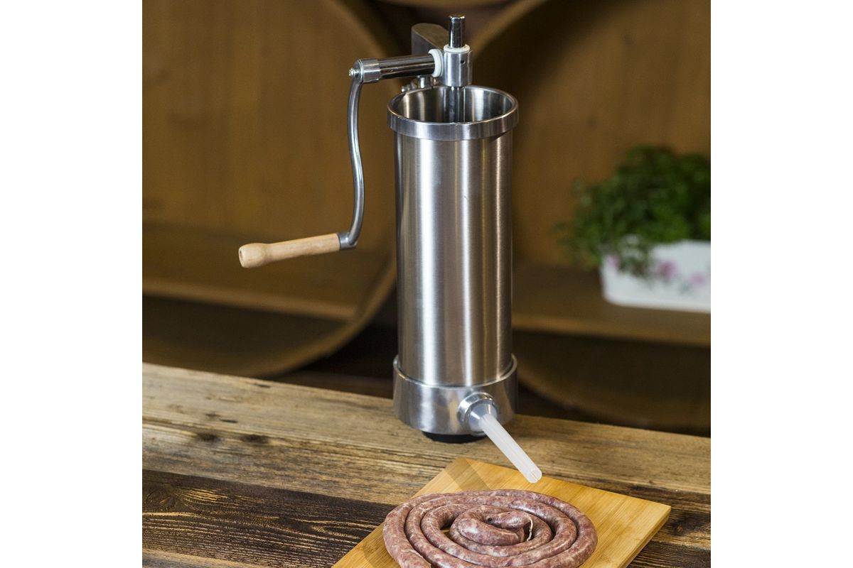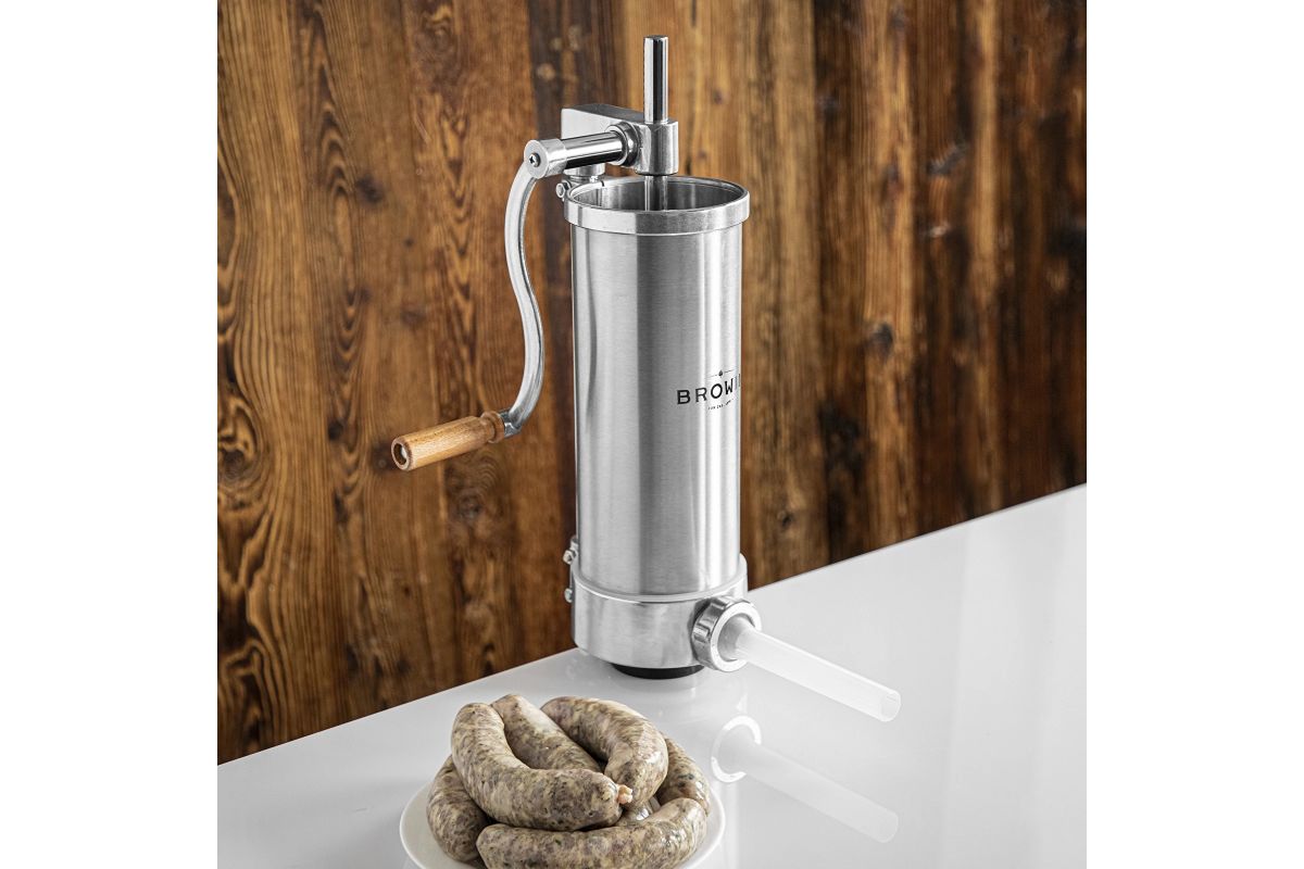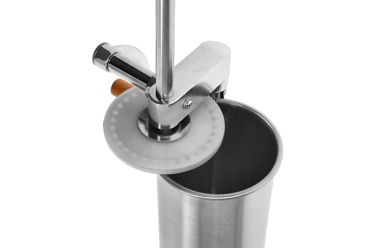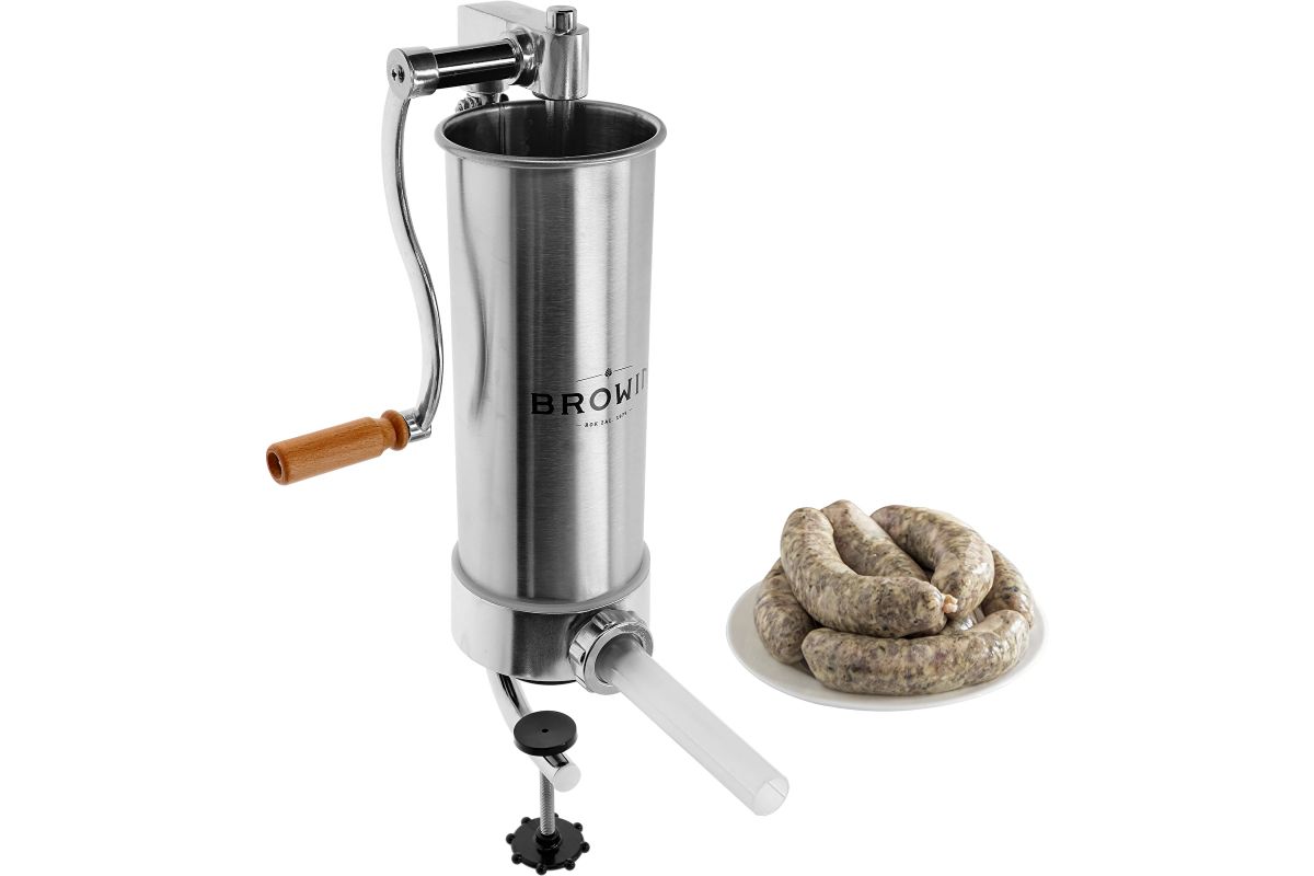 Ručná plnička klobás - jednoduchá obsluha z nej robí perfektný nástroj na domácu výrobu klobás. Vďaka nemu môžete mäsové črievka jednoducho a rýchlo naplniť plnkou. Plnka má piest s odvzdušňovacím otvorom, ktorý odstraňuje vzduch z mäsovej plnky, čo umožňuje ľahšiu plnku. Okrem toho je výrobok vybavený lievikmi so špeciálnymi priehlbinami, ktoré umožňujú kompaktné naplnenie čriev plnkou (bez vzduchových bublín) a perfektné prispôsobenie rôznym druhom klobás. Plnička je vertikálna a zaberá málo miesta na kuchynskej linke, vďaka čomu je nevyhnutná pri výrobe klobás, údenín a vnútorností.