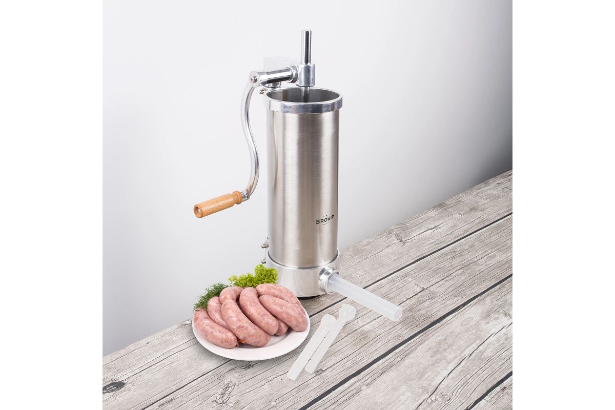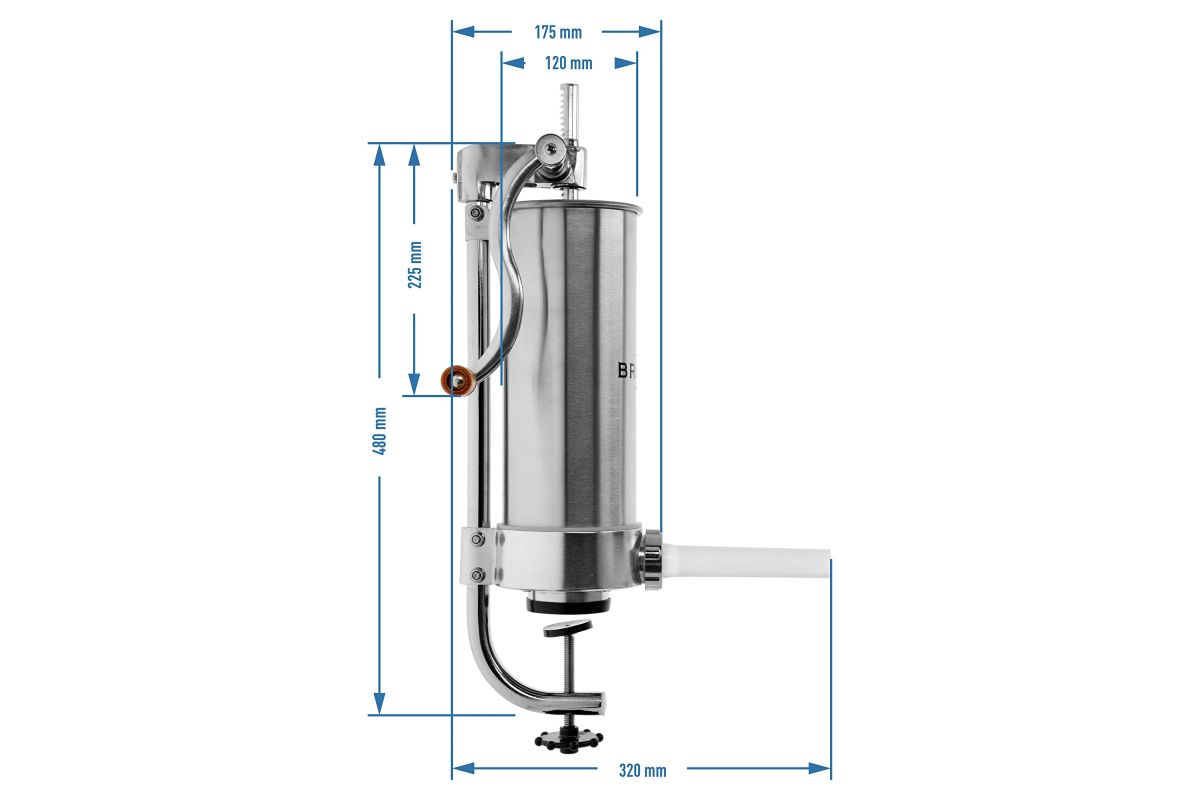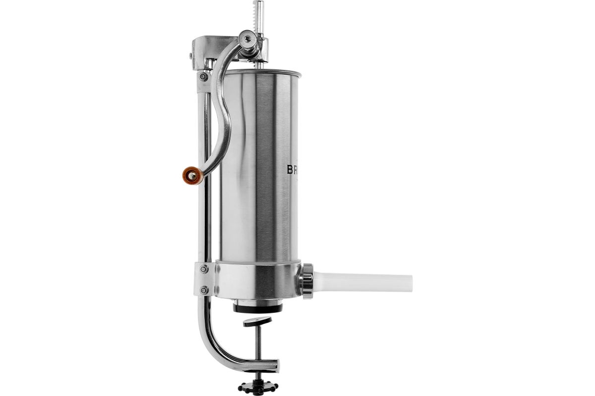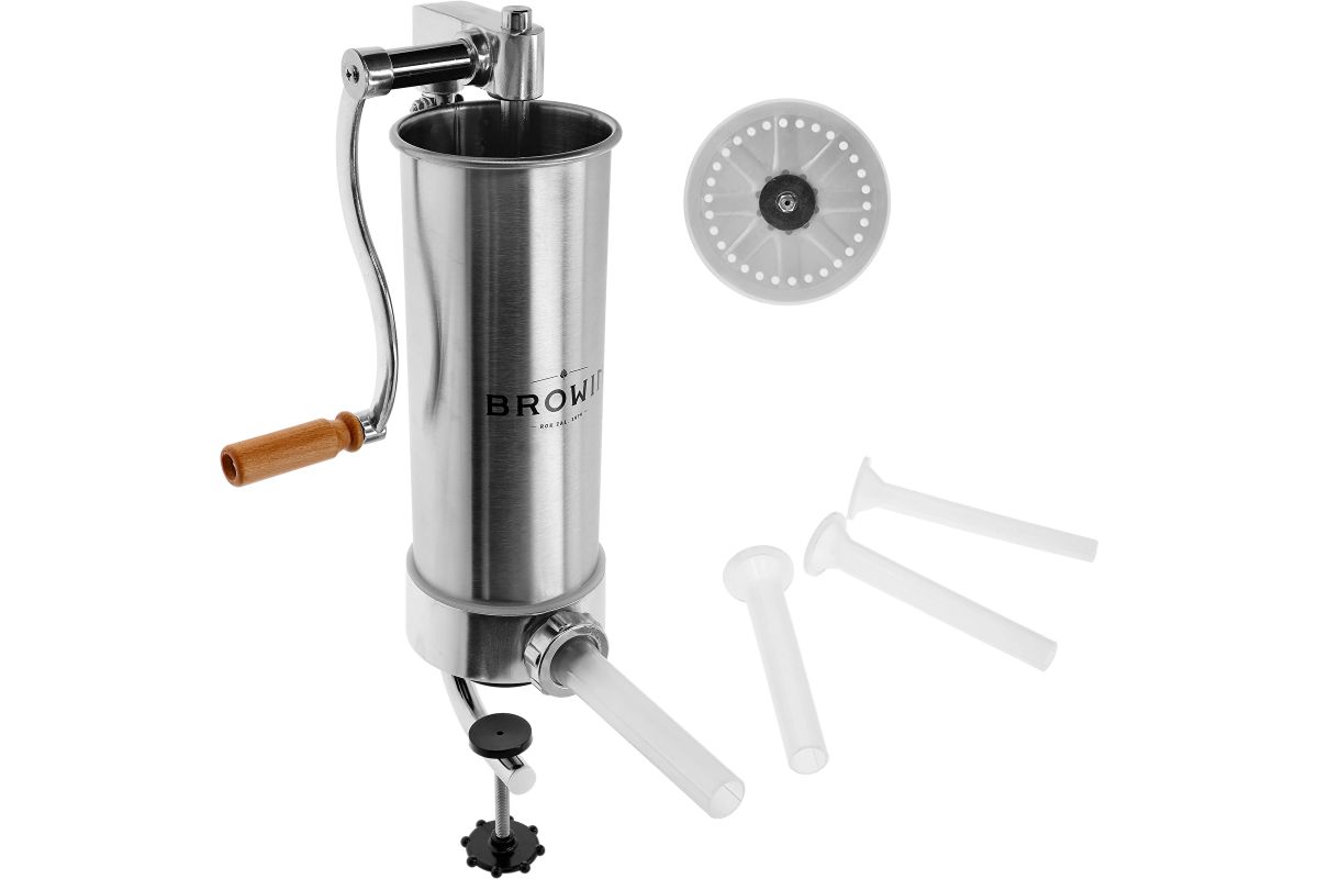 Ručná plnička klobás - jednoduchá obsluha z nej robí perfektný nástroj na domácu výrobu klobás. Vďaka nemu môžete mäsové črievka jednoducho a rýchlo naplniť plnkou. Plnka má piest s odvzdušňovacím otvorom, ktorý odstraňuje vzduch z mäsovej plnky, čo umožňuje ľahšiu plnku. Okrem toho je výrobok vybavený lievikmi so špeciálnymi priehlbinami, ktoré umožňujú kompaktné naplnenie čriev plnkou (bez vzduchových bublín) a perfektné prispôsobenie rôznym druhom klobás. Plnička je vertikálna a zaberá málo miesta na kuchynskej linke, vďaka čomu je nevyhnutná pri výrobe klobás, údenín a vnútorností.