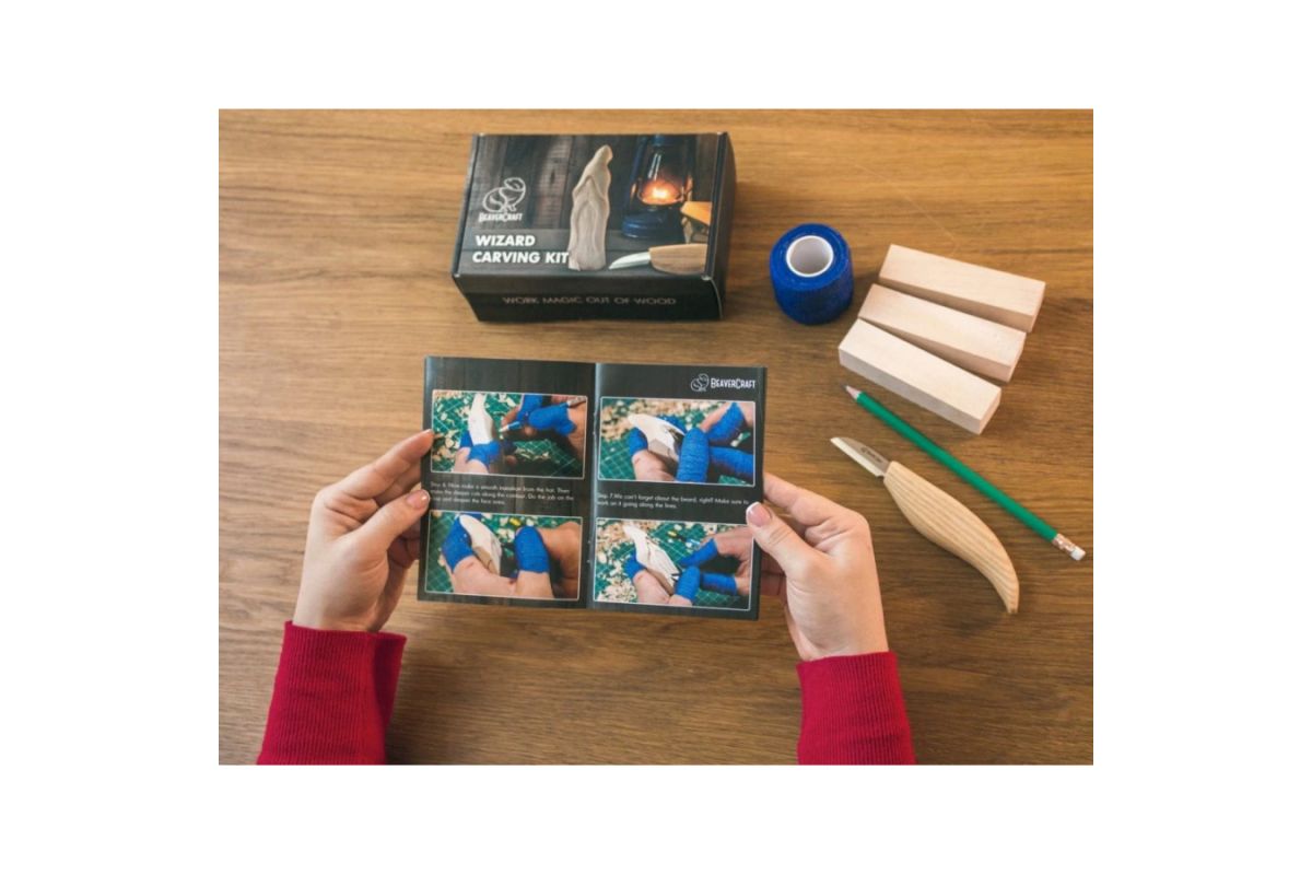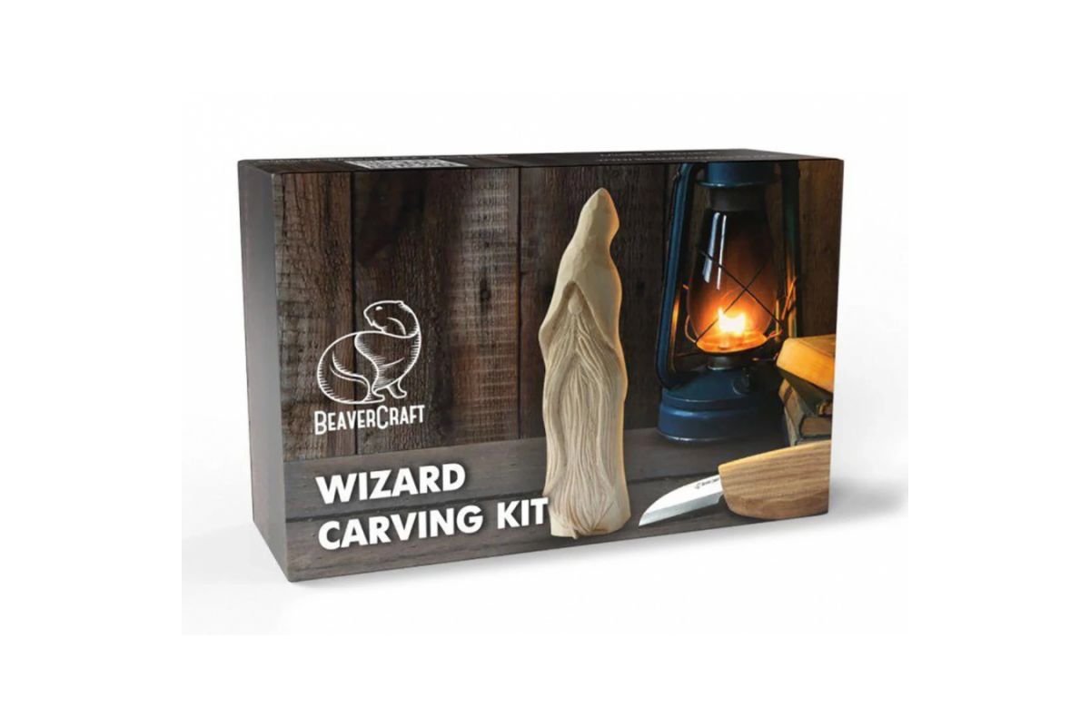 Zábavná sada na vyrezávanie pre deti od 12 rokov, dospelých aj celé rodiny. Obsahuje všetko potrebné na vyrezanie postavičky čarodeja – vrátane rezbárskeho noža BeaverCraft C2, návodu a troch lipových hranolov pripravených na spracovanie.