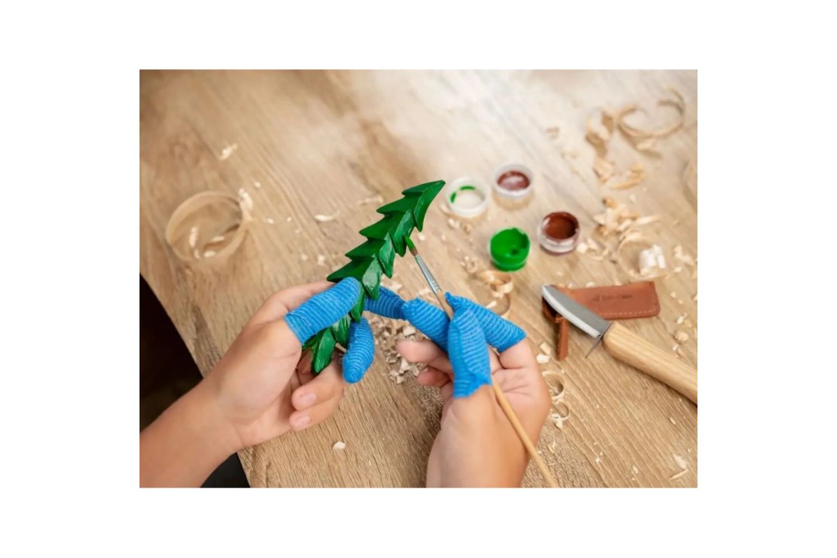 Kreatívna sada na vyrezávanie dreveného stromčeka, ideálna pre deti (12+), rodičov aj začiatočníkov v rezbárstve. V balení nájdete všetko potrebné na svoj prvý drevorezbársky projekt – od náradia až po dekoráciu hotového výtvoru.